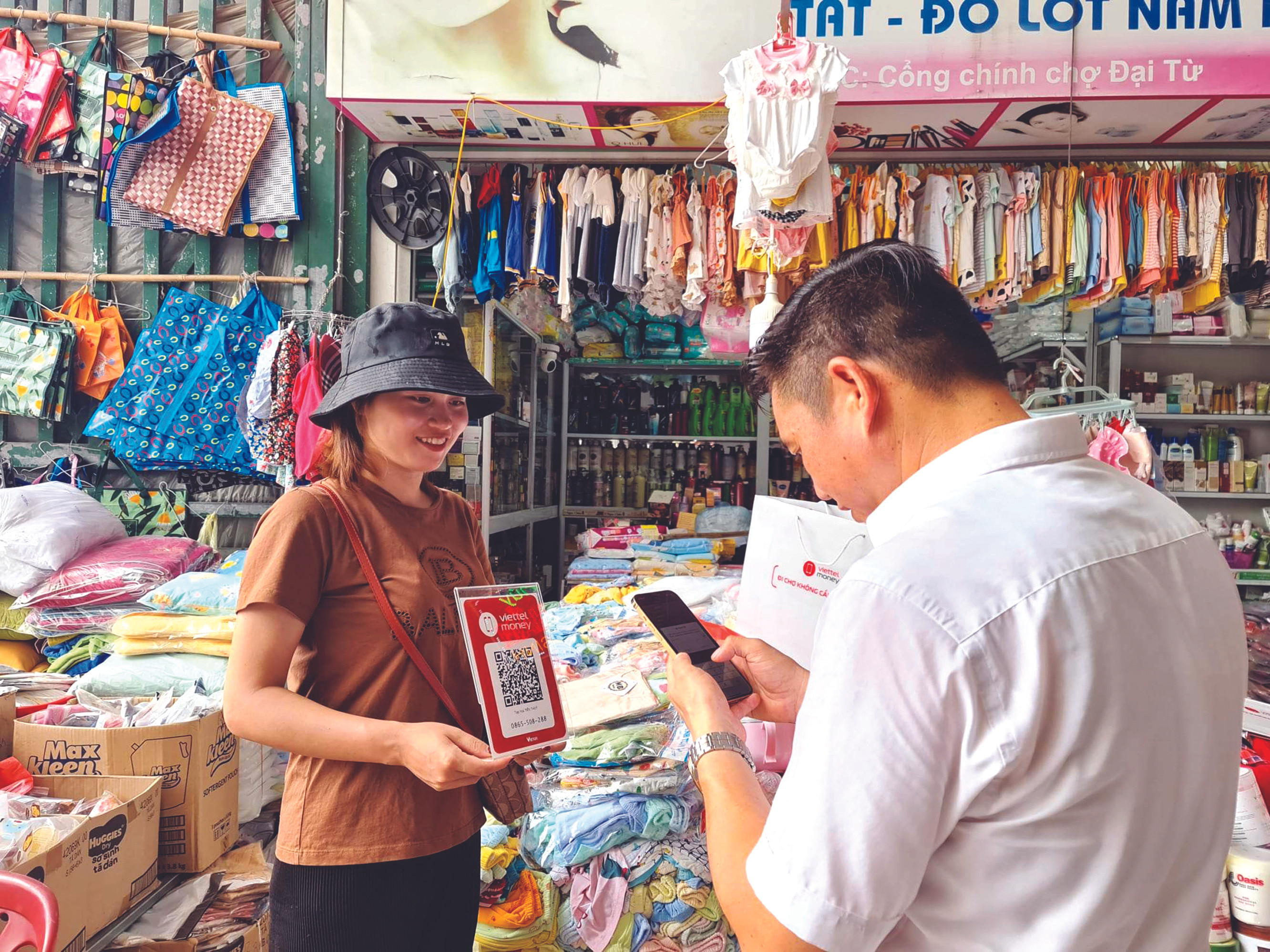 Trước đây, mỗi lần đi chợ, chị Nguyễn Thị Hường (Cần Thơ) phải mang theo một lượng tiền mặt nhất định. Từ khi làm quen với phương thức thanh toán số, chị Hường chỉ cần cầm theo điện thoại thông minh, quét mã và thanh toán. Từ hàng rau tới quầy bán thịt đều có dán mã QR để cho người mua tiện thanh toán. “Đi chợ không tiền mặt vừa nhanh mà không phải lo làm rơi tiền hay bị móc ví”, chị Hường nói.