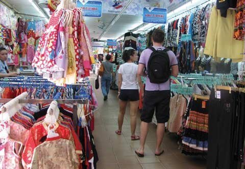 Ngoài ra, dọc theo các hành lang bao quanh nhà lồng chợ là những gian hàng bày bán đủ các loại mặt hàng tiêu dùng phục vụ khách du lịch, đặc biệt là hàng lưu niệm, quần áo may sẵn, vải tơ tằm, thủ công mỹ nghệ, tranh thêu, thổ cẩm...