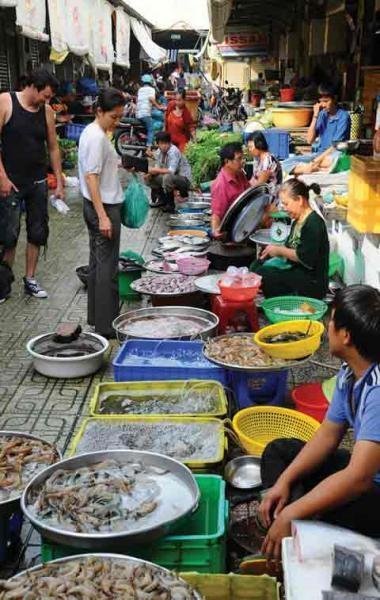 | Ở đây không thiếu một thứ gì, từ củ hành, trái ớt, mớ rau, con cá. |
