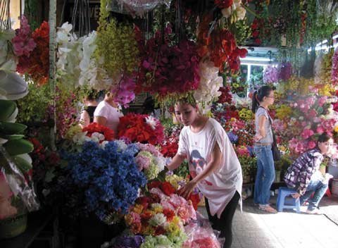 | Cô tiểu thương hàng hoa giả vừa xinh đẹp vừa hợp mốt |