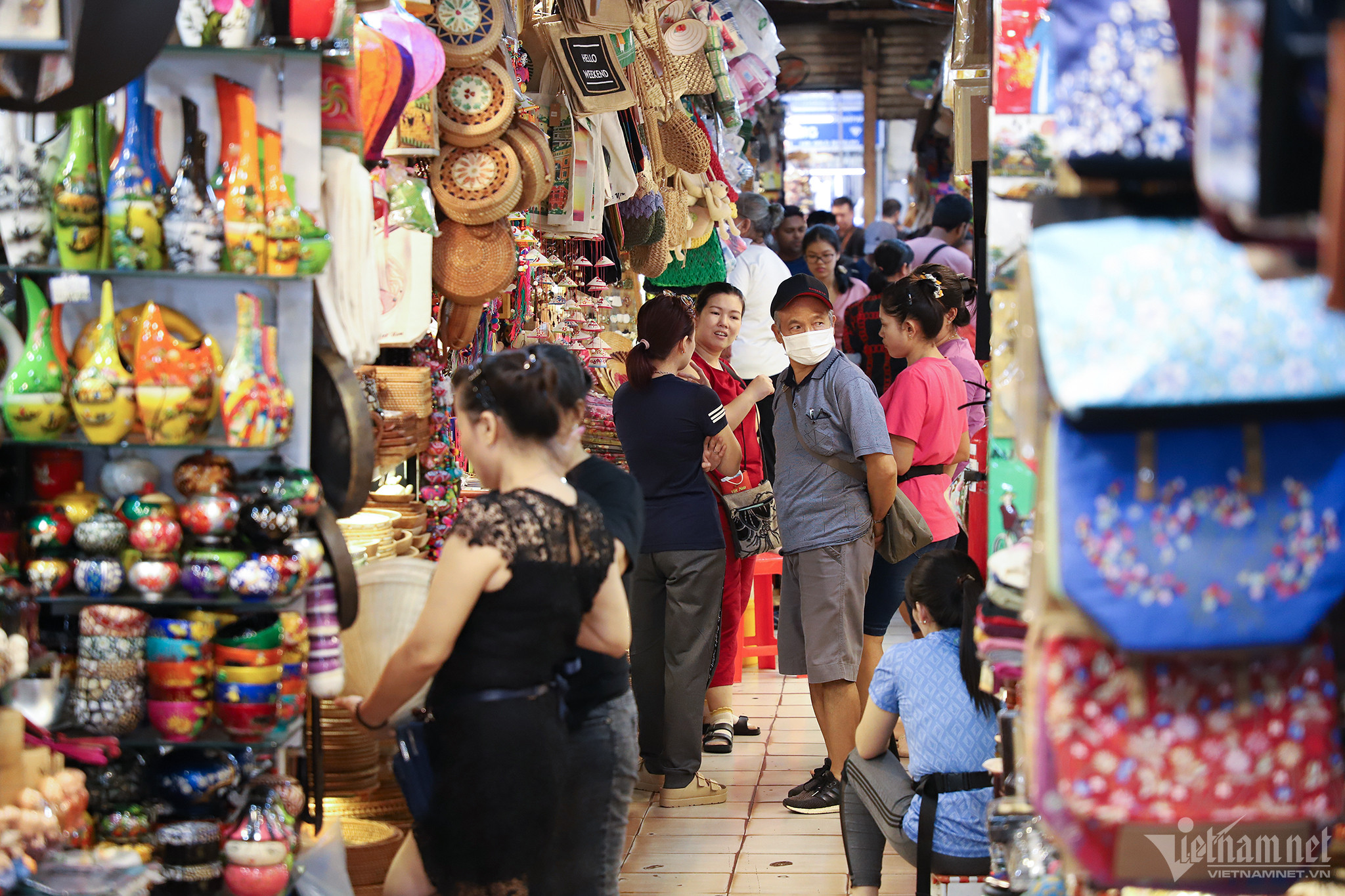 "Nhiều tháng qua, du khách đến đây chủ yếu từ khu vực Đông Nam Á, trong đó nhiều nhất là Malaysia, Indonesia. Tỷ lệ người Nhật hay Hàn Quốc tới chợ không còn nhiều như mấy năm qua. Doanh thu của chúng tôi vì thế cũng chưa mấy khả quan", anh Duy Phương (kinh doanh đồ trang sức) chia sẻ.