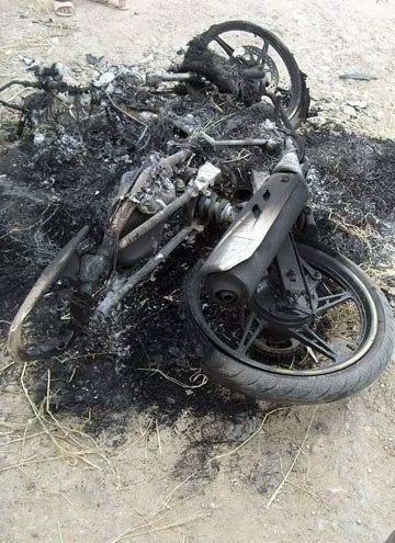 | Xe của một cẩu tặc bị đốt cháy rụi. Ảnh: Hải Bình/ VNE |