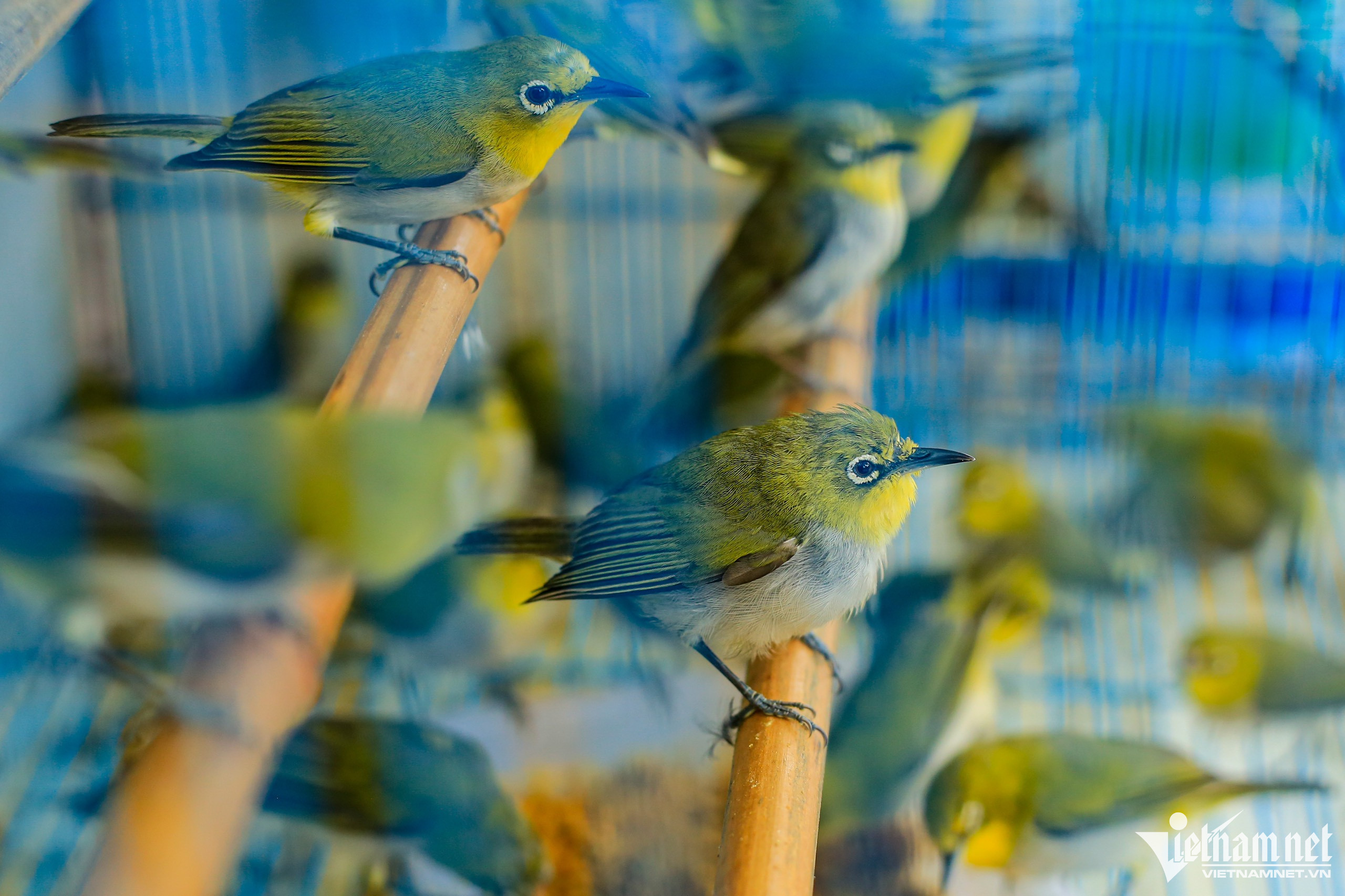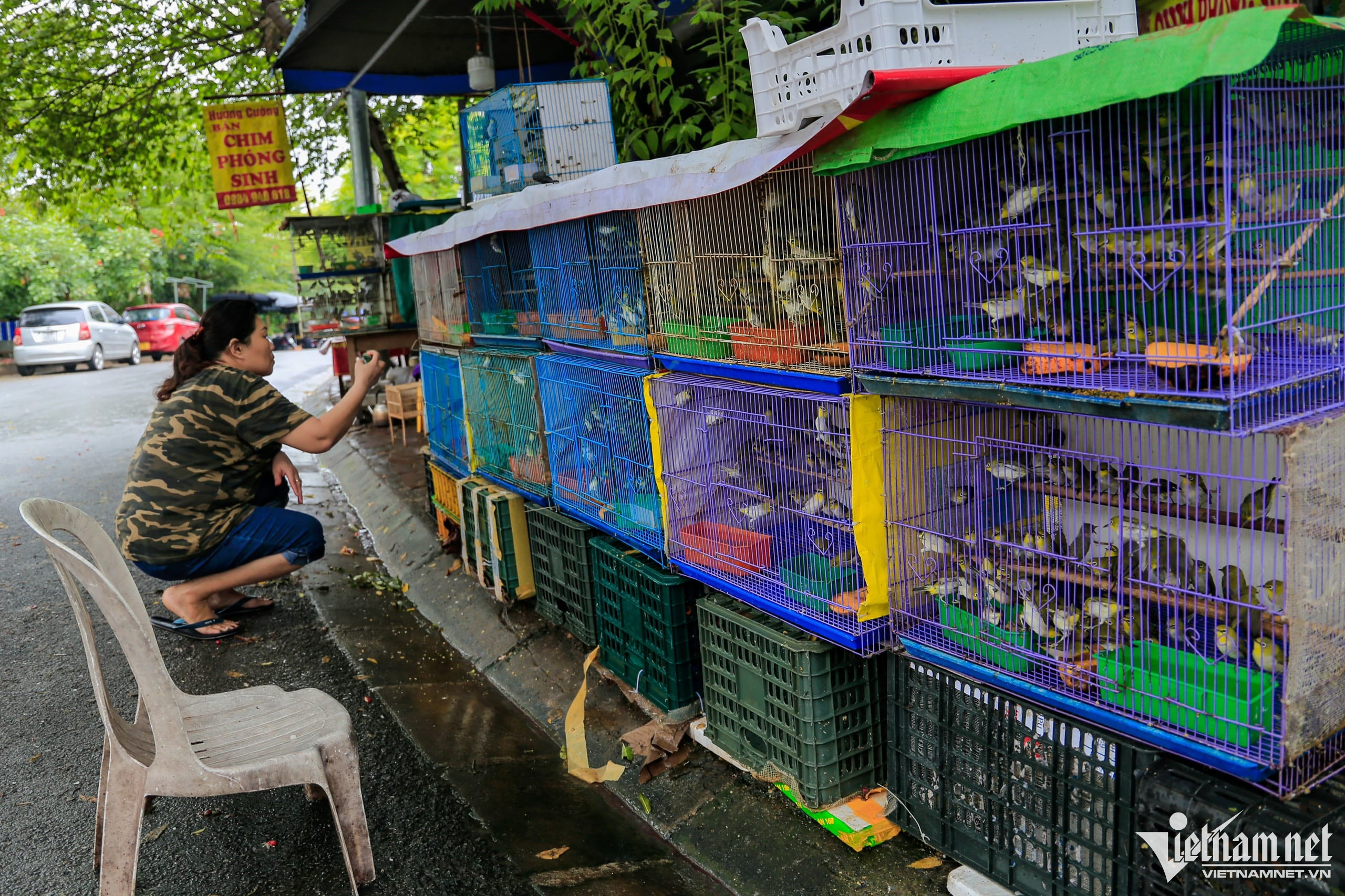 Trước rằm tháng 7 vài ngày, điểm bán chim phóng sinh trên phố Hoàng Hoa Thám (Hà Nội) nhộn nhịp hơn so với bình thường. Các sạp để lồng chim được bày tràn ra vỉa hè.Dịp này, loài chim sẻ, ri đá và vành khuyên được nhiều khách quan tâm, lựa chọn.Chim vành khuyên có giá từ 20.000-25.000 đồng/con, chim sẻ và ri đá là 15.000 đồng/con, tăng khoảng 5.000 đồng/con, cao hơn 1,5 lần so với ngày bình thường. Một số loại chim khác như bồ câu 150.000 đồng/con, cũng được nhiều người quan tâm. Theo người bán, khách ở đây thường là Phật tử đến mua để phóng sinh tại chùa. “Mỗi ngày tôi đang bán được khoảng 1.000 con. Lượng đơn chủ yếu từ các Đạo tràng, Phật tử, họ mang lên chùa phóng sinh. Chưa đến rằm tháng 7 tôi đã nhận được một đơn hàng đặt mua trước 1.000 con, mấy hôm nữa có thể bán được 2.000-3.000 con”, chị Cao Thị Tuyết nói. Còn theo chị Hương, giá cả và số lượng chim còn phụ thuộc vào ngày lễ, thời tiết. Những hôm trời mưa, số lượng nhập sẽ ít hơn vì chim không ra ngoài tổ. "Vào ngày lễ sức mua của người dân tăng cao khiến hàng trở nên khan hiếm", chị nói.Dịp lễ Vu lan, gia đình anh Nam có thói quen làm lễ phóng sinh. Mỗi lần tới đây anh thường mua 100-200 con. Anh Sơn (phường Xuân Đỉnh), chia sẻ: “Mấy hôm trước tôi mua, chưa đến 10.000 đồng/con, nhưng hôm nay hỏi giá các loại thấy dao động từ 15.000-20.000 đồng/con. Do cần số lượng nhiều, tôi phải tham khảo thêm”.“Năm nay, tôi mua 21 con theo số tâm linh để cầu mong sự may mắn, sức khoẻ và mọi việc đều hanh thông”, người phụ nữ mặc áo mưa đỏ nói.