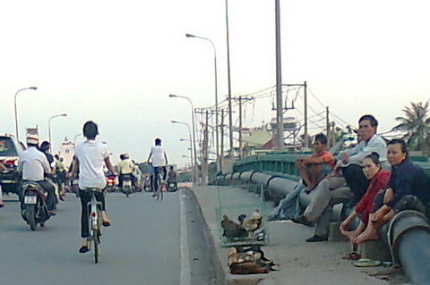 Tương tự trên cầu An Lộc (giáp ranh quận 12 và quận Gò Vấp) xe máy chở gà dàn thành hàng dài trên cả hai lề cầu. Người bán, người mua dường như chẳng quan tâm đến thông tin dịch bệnh H5N1 đang có nguy cơ bùng phát.