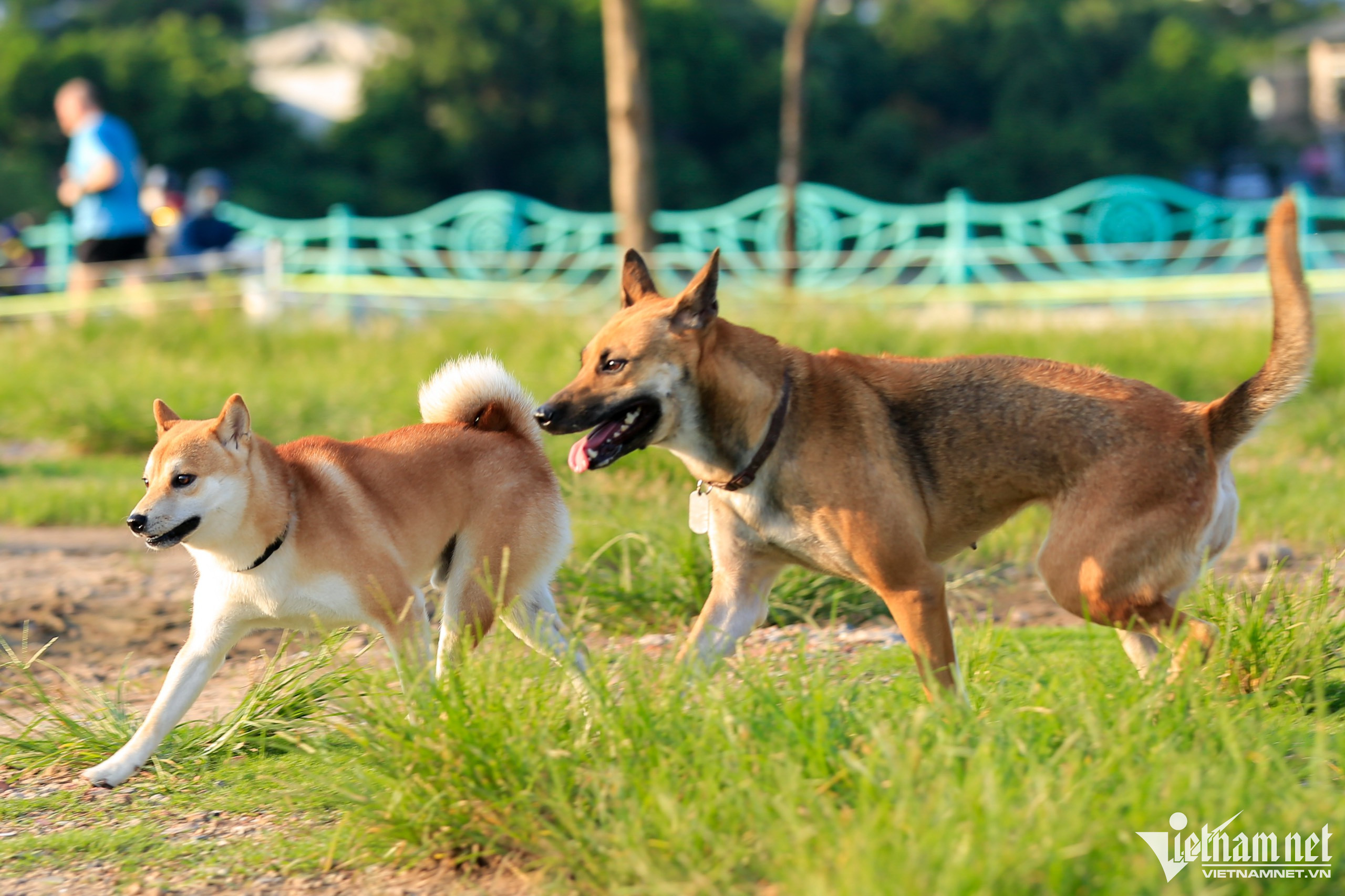 Nhiều giống chó dữ không đeo rọ mõm lẫn buộc dây xích được thả rông tràn lan ở các công viên, vườn hoa, ven hồ tại Hà Nội.