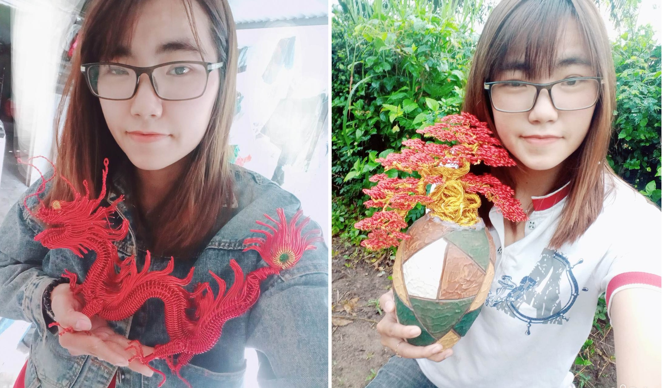 9X liền lên mạng tìm hiểu cách làm rồi mua dây về tự uốn nắn. “Lúc đầu làm ra sản phẩm không giống như hình mẫu, tôi rất nản. Nhưng do mê bộ môn nghệ thuật này tôi lại cố gắng thực hành. Làm nhiều rồi tôi tự rút kinh nghiệm, sản phẩm sau tốt hơn và nhanh hơn sản phẩm trước”, Thật nhớ lại.