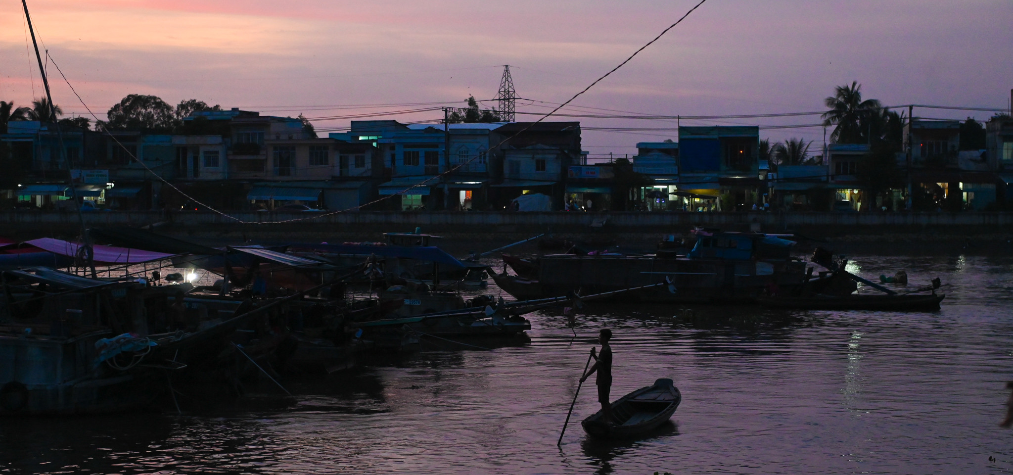 18h, hoàng hôn buông xuống cũng là lúc chợ nổi chìm vào cảnh vắng lặng, kết thúc ngày các tiểu thương buôn bán lênh đênh trên sông nước.