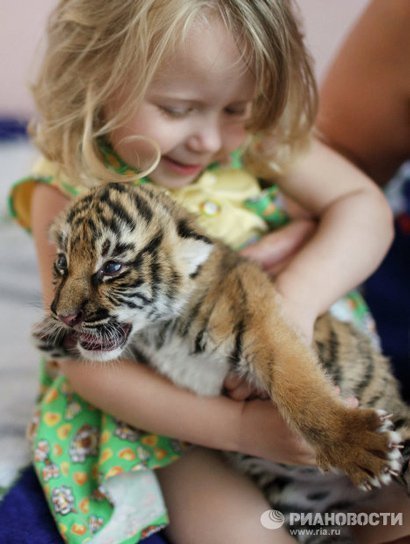 Người không muốn chia tay với hai chú hổ và cũng được hai chú rất quyến luyến là cô chủ nhỏ của Cleopatre, đã cùng chó mẹ nuôi nấng hai hổ con.