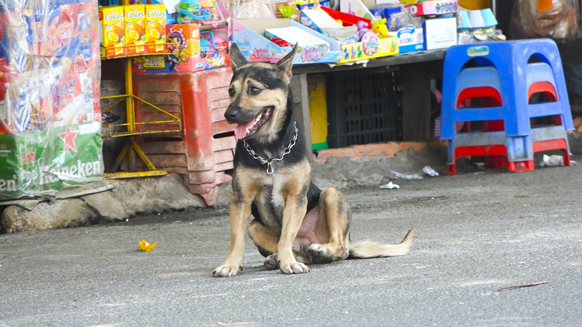Chó thả rông nghênh ngang trên đường phố, khắp con hẻm, khu dân cư, các công viên... ngoài việc tiềm ẩn nguy cơ lây lan dịch bệnh còn có thể gây tai nạn cho người đi đường. Ảnh: Tuấn Kiệt.