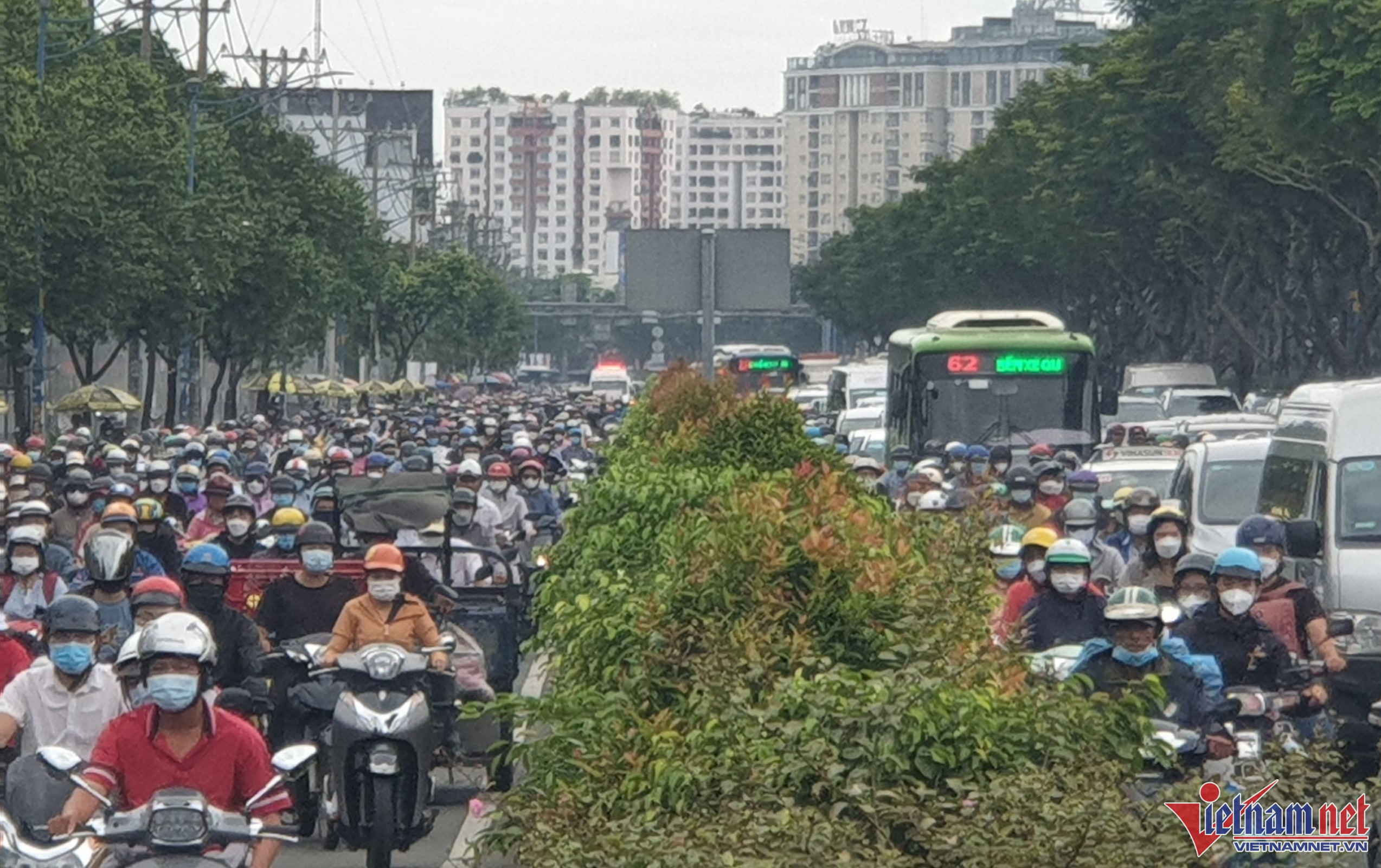 Để giảm tải giao thông qua khu vực đang xử lý ống cấp nước D1000 bị xì, Sở GTVT tổ chức cho xe máy được phép chạy vào một làn ô tô đường Trường Chinh (đoạn từ đường Phạm Văn Bạch đến đường Cộng Hòa) trong khung giờ từ 6 - 20h.