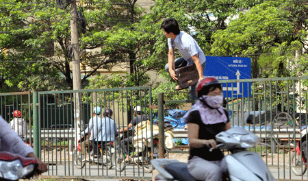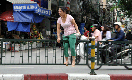 | Ngay cả các cụ già cũng không chịu kém cạnh. Khi cần sang đường cũng sẵn sàng trèo qua lan can bằng thép... |
