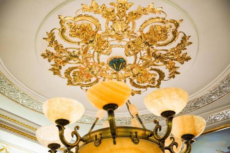 Nhìn từ bên ngoài, công trình kiến trúc nổi bật với gam màu trắng, tuy nhiên, bên trong ngôi nhà lại được Lý Nhã Kỳ trang trí bắt mắt, đặc biệt là được dát vàng từ cổng vào đến nội thất bên trong.