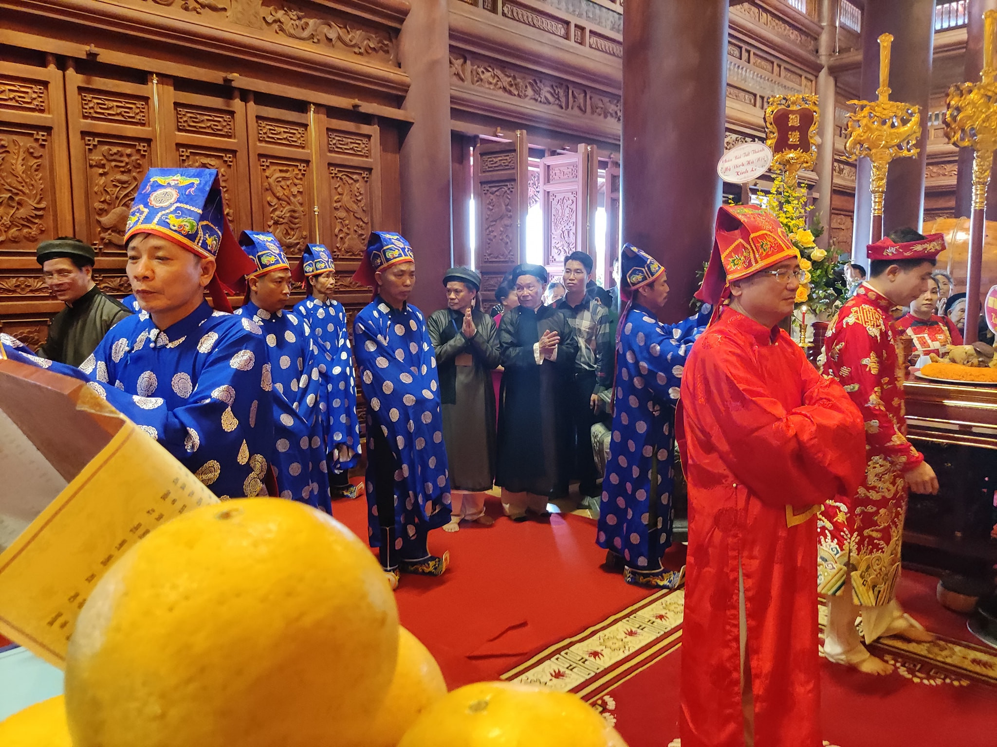 Cảnh tế lễ trong ngày giỗ tổ (6/2 âm lịch) hàng năm của dòng họ Bùi trong nhà thờ.