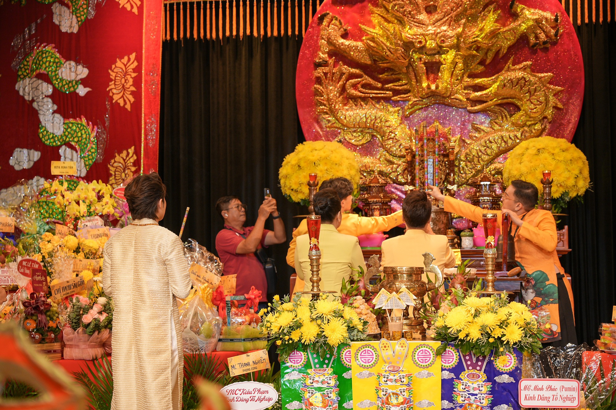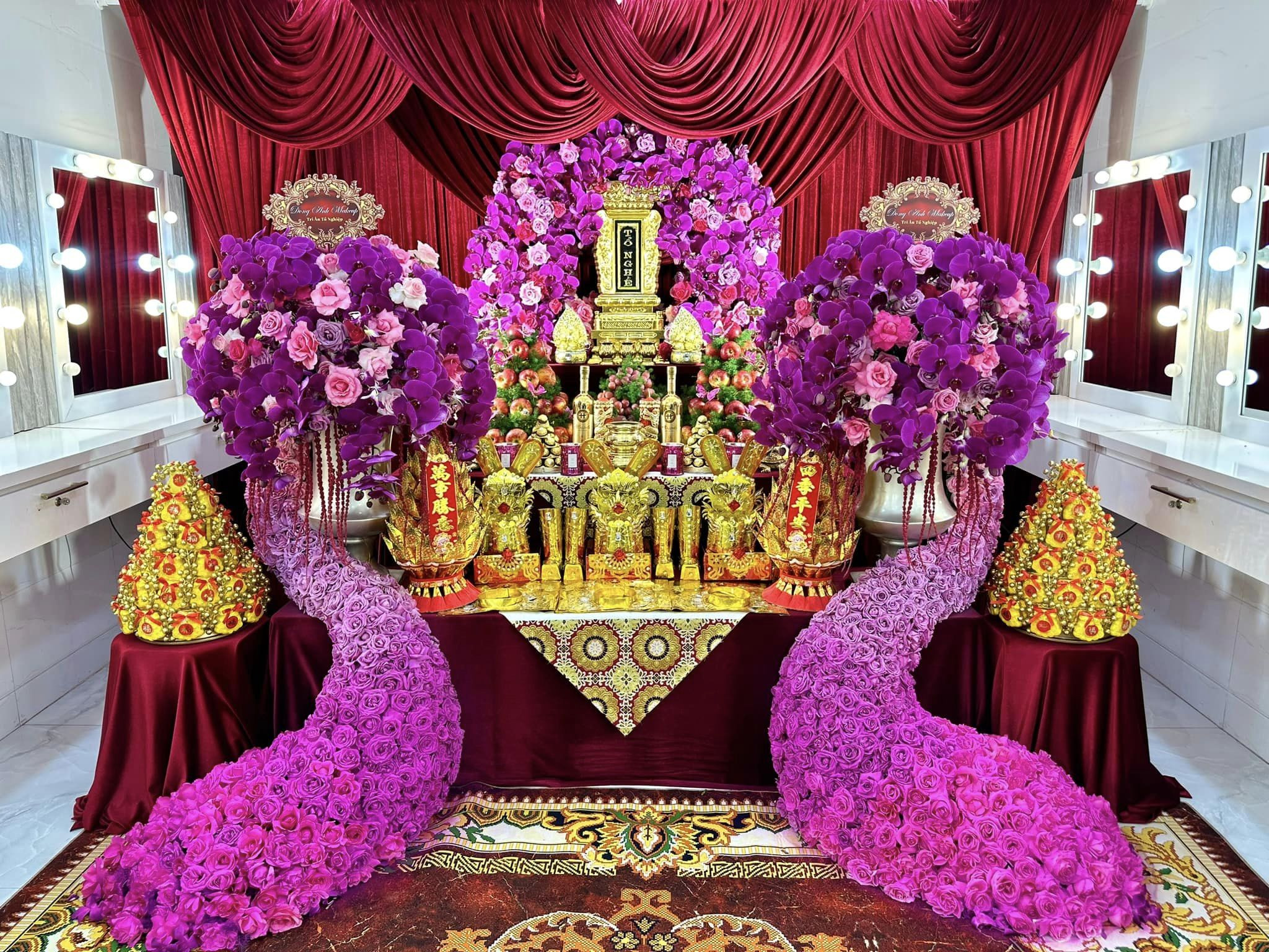Anh tâm niệm, bàn thờ Tổ nghiệp phải luôn rực rỡ và lộng lẫy. Thế nên, vào dịp giỗ tổ, anh nhờ đơn vị trang trí tiệc thực hiện phần khung nền bàn thờ chỉn chu và trang nghiêm.