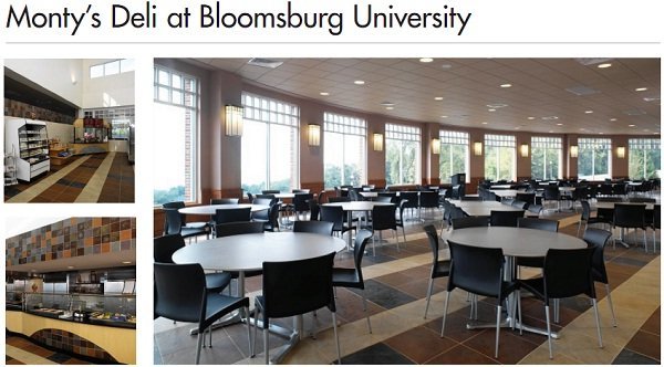 Chỗ ngồi trong cantin của trường Bloomsburg có thể chứa đến 300 sinh cùng một lúc. |