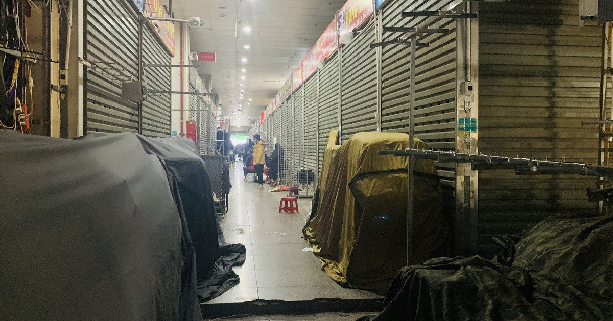 Vội vàng đóng quầy nghỉ bán, người đi về, người đứng thành nhóm buôn chuyện... là hình ảnh của các tiểu thương tại trung tâm thương mại Sơn Long, khu chợ Ninh Hiệp, Hà Nội trưa 31/12/2020.