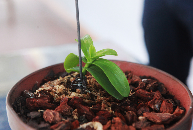 Tại đây, một số người chơi lan cũng tìm mua những giống lan quý. Trong ảnh, một cây lan phi điệp 5 cánh trắng Hiển Oanh (5ct HO)