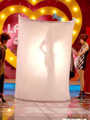 | ...sau đó, các chân dài được yêu cầu thay đổi trang phục ngay trên sân khấu sau một tấm màn che có thể nhìn xuyên thấu (ảnh: cfp) |