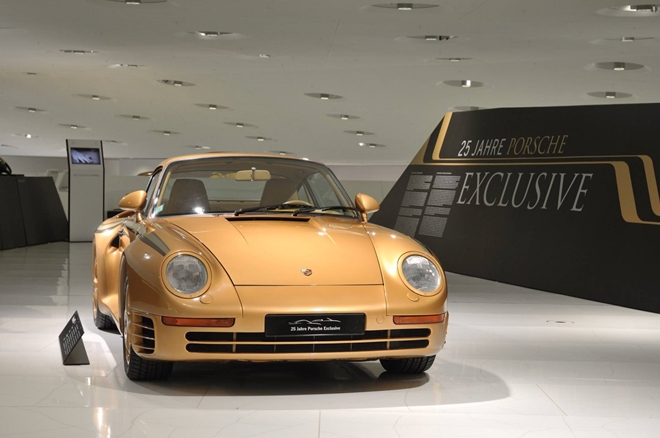 Vào năm 2011, Porsche Exclusive đã kỷ niệm 25 năm thành lập và được sự cho phép của chủ sở hữu đã để chiếc xe màu vàng - 1 trong 7 chiếc 959 kể trên - tại Bảo tàng Porsche như một phần của cuộc triển lãm đặc biệt. Chiếc xe màu vàng với nhiều chi tiết được mạ vàng thật này cho thấy sự xa xỉ và quyền quý của Hoàng gia Qatar.