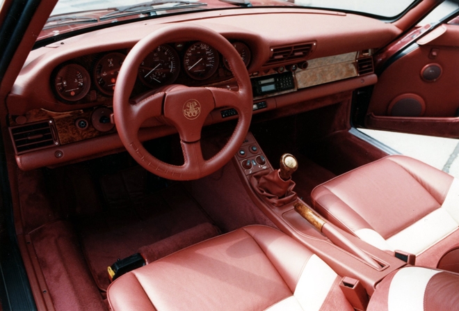 Hình ảnh nội thất của một chiếc xe Porsche 959 màu đỏ trong bộ sưu tập. |