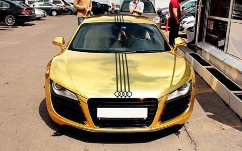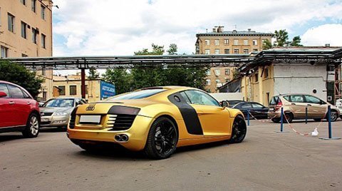 Dù không phải là mẫu R8 mới ra mắt gần đây, nhưng siêu xe của Audi vẫn thu hút mọi ánh nhìn khi khoác trên mình bộ cánh vàng nổi bật.