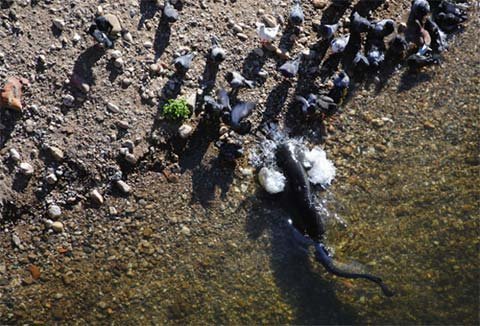 Trong một phát triển bất thường mà các nhà nghiên cứu gọi là bằng chứng của sự thích nghi, một số con cá trê ở một con sông thuộc nước Pháp đã phóng lên cạn để bắt sống chim bồ câu.