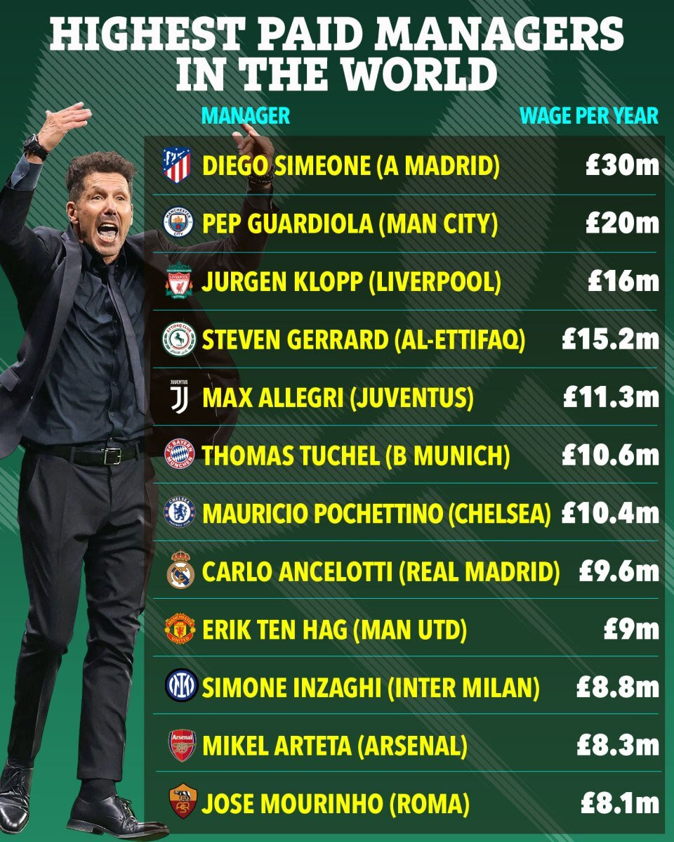 Trên bình diện Thế giới, thù lao của Gerrard chỉ kém hai nhà cầm quân khác là Diego Simeone (30 triệu bảng/năm) và Pep Guardiola (20 triệu bảng/năm).