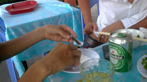 | Bồ đà được sử dụng công khai trong quán nhậu. |