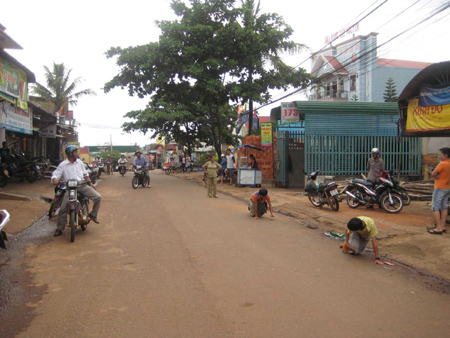 là Đỗ Văn Cường và Đỗ Văn Tráng bò hết 1km trên đường Hai Bà Trưng.