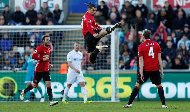 Trong tâm trạng phấn khích, chân sút 35 tuổi có màn ăn mừng khiến khán giả giật mình: thực hiện cú song phi hướng về phía đồng đội Phil Jones để chia vui. Tuy nhiên, đây không phải là trận đấu trọn vẹn cho Ibrahimovic, khi ở phút 76 anh phải nhận 1 thẻ vàng do phạm lỗi với cầu thủ đối phương.