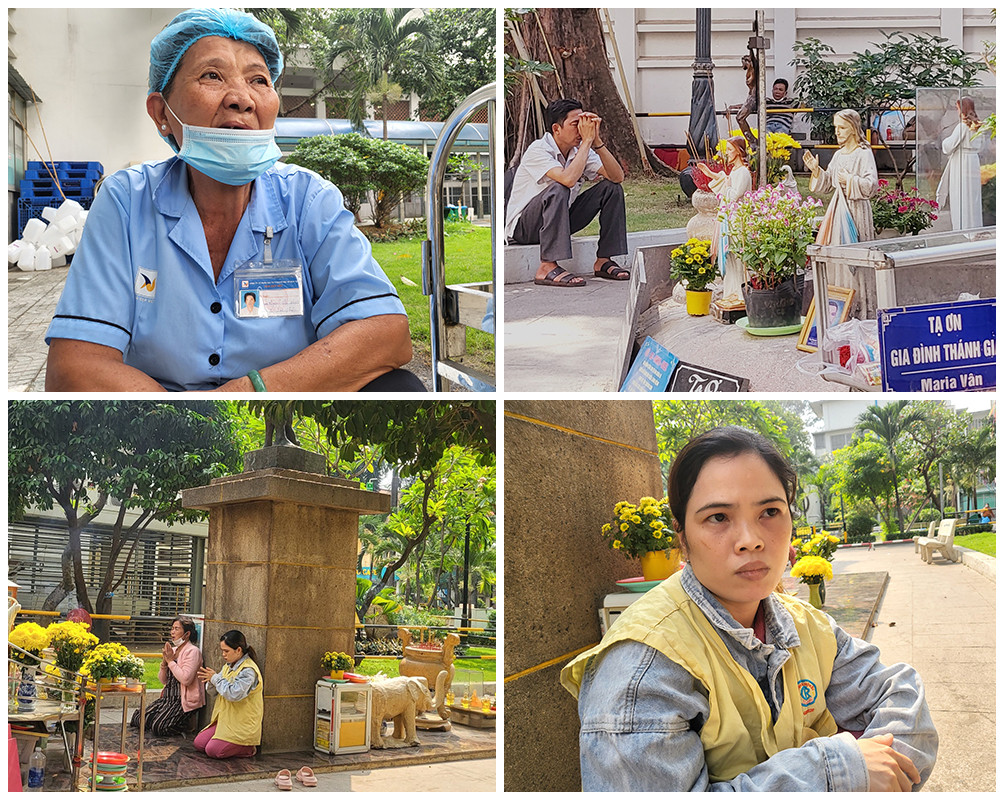 “Những ngày rằm, ngày Tết, người nhà bệnh nhân mang hoa và trái cây đến cúng nhiều nhưng trật tự. Không ai bảo ai, thấy hoa héo thì tự dọn dẹp. Người theo Công giáo cầu nguyện một bên, người theo Phật giáo cũng nguyện cầu một bên”, bà kể.