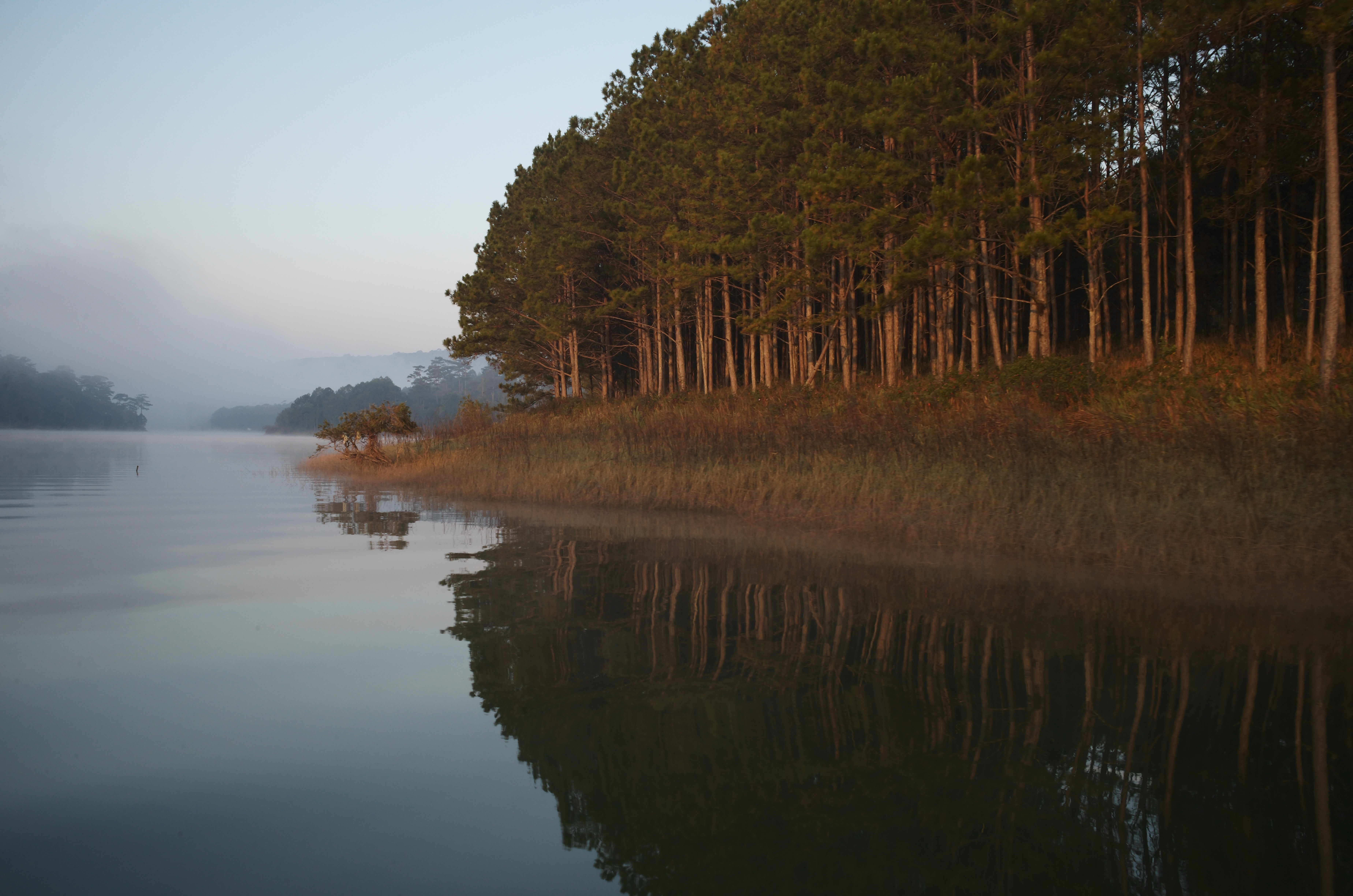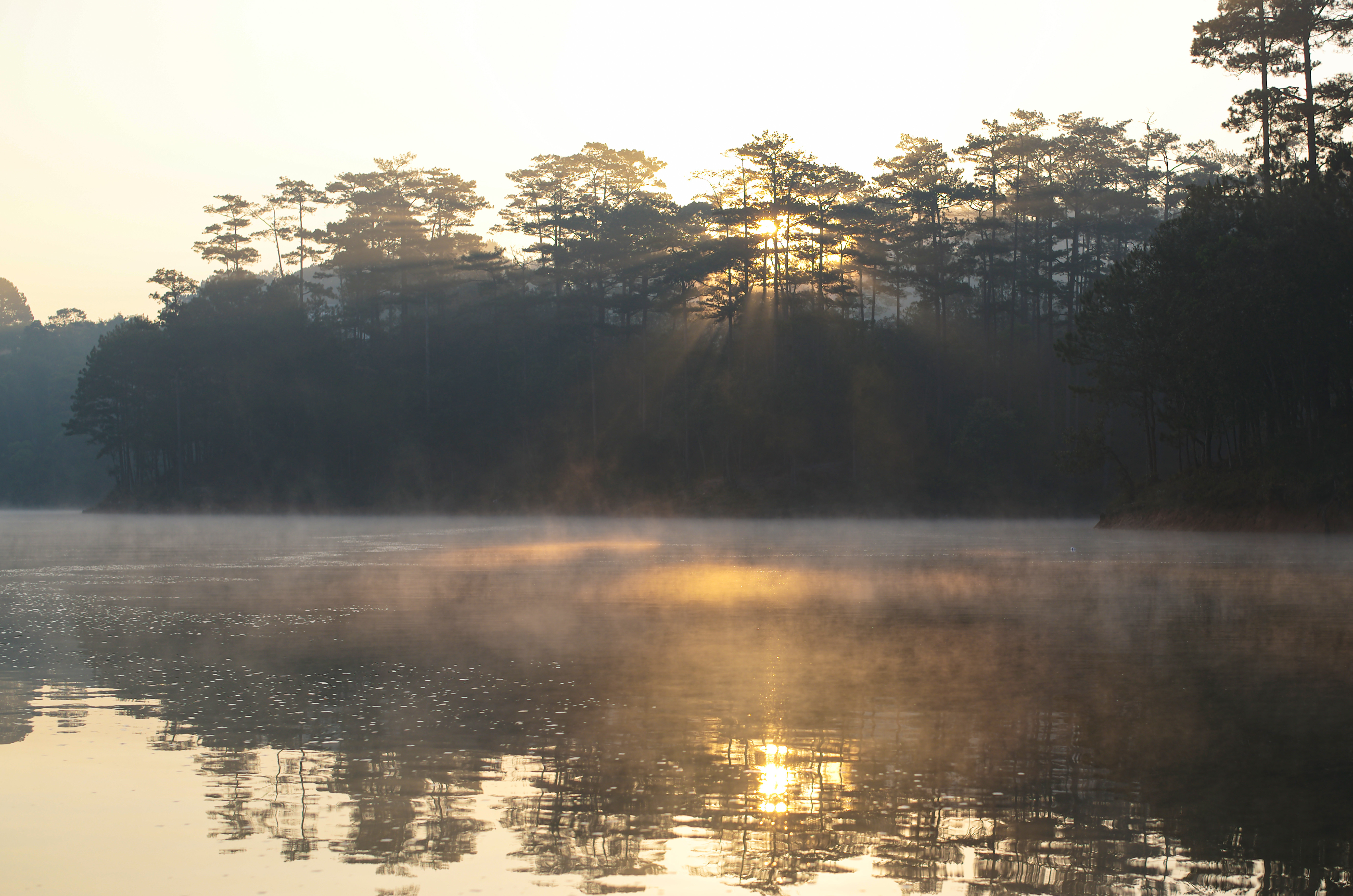 Và rồi khoảnh khắc ngắn ngủi, khi những tia nắng đầu tiên chiếu xuống xuyên qua màn sương, để trở nên lấp lánh và làm bừng sáng cả không gian. Tất cả tạo nên một bức tranh đầy huyễn hoặc.