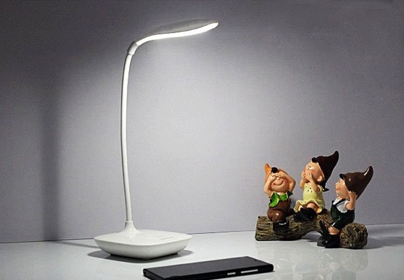Đèn LED pin sạc cảm ứng để bàn được làm từ chất liệu nhựa PVC, màu trắng trang nhã, thích hợp khi bài trí trong mọi không gian, công suất 2,5W và nguồn điện 5V.