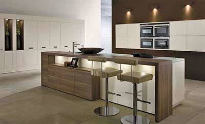 Xu hướng phổ biến là dùng các loại tủ bếp có các thiết bị bếp được thiết kế âm bên trong vì sẽ giúp cho khu vực bếp trở nên rộng rãi, sang trọng. Ngoài ra, để tiện tay làm bếp, việc thiết kế những hệ thống kệ treo một cách khoa học xung quanh khu vực nấu nướng vẫn luôn được ưa chuộng.