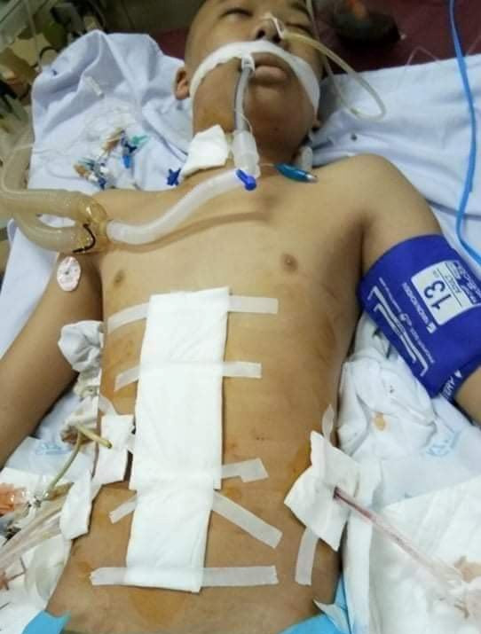 Cách đây 4 tháng, con trai chị là cháu Nguyễn Minh Quân (15 tuổi, học sinh lớp 8) gặp tai nạn giao thông khi đang trên đường đi học về. Hung tin truyền về, vợ chồng chị Lam ngã quỵ, tức tốc tới bệnh viện. Do tình trạng của Quân nặng nên buộc phải làm thủ tục chuyển lên tuyến trên. Tại các bệnh viện ở Hà Nội, bác sĩ kết luận cháu bị vỡ gan, đứt mạch máu chủ ở bụng, nhiễm trùng máu, suy thận...
