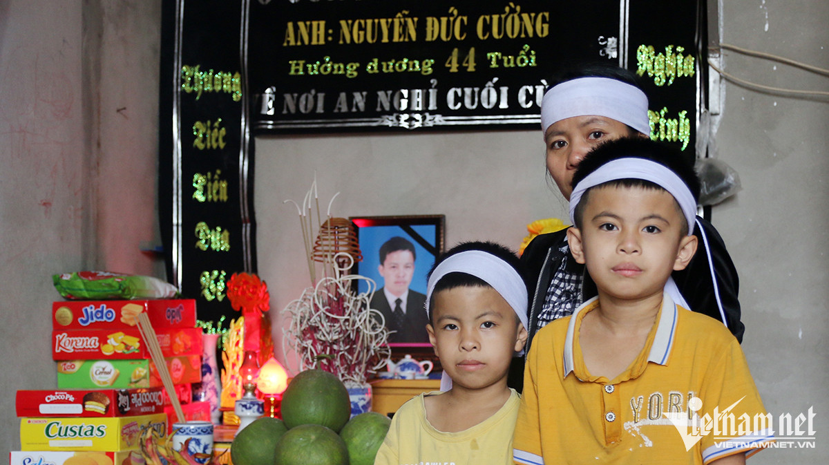 Đã gần 2 tuần kể từ ngày anh Cường đột ngột ra đi, vợ anh, chị Hà Thị Hiền (36 tuổi) vẫn ngồi bần thần bên bàn thờ còn nghi ngút khói nhang của chồng.