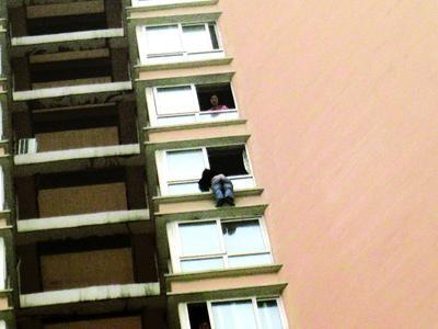 Nhìn thấy vợ trèo ra cửa sổ định nhảy từ tầng 15 xuống dưới, anh chồng vội vàng lao ra, hai tay kéo lấy vợ và dùng răng gặm vào áo vợ trong suốt 40 phút.