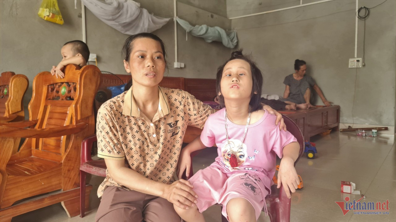 Chưa dừng lại ở đó, con gái Lê Thị Hiệp (SN 2014) chào đời lại có dị tật khuyết hậu môn. Lớn hơn, gia đình cũng phát hiện Hiệp có dấu hiệu bại não giống anh trai. Mắt con còn bị sụp mí khiến việc nhìn gặp khó khăn, từ đó đi lại hay hoạt động cũng chậm chạp.