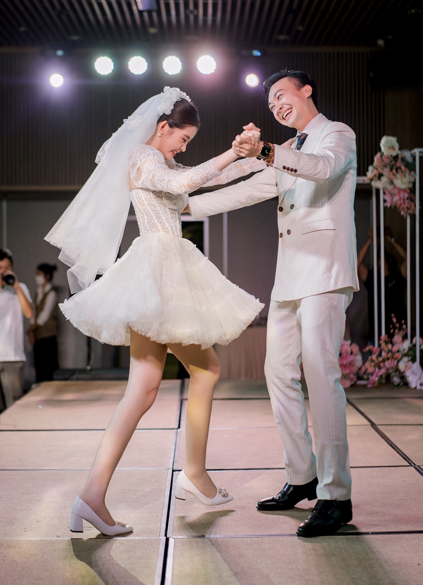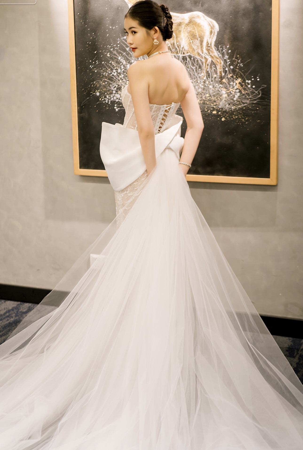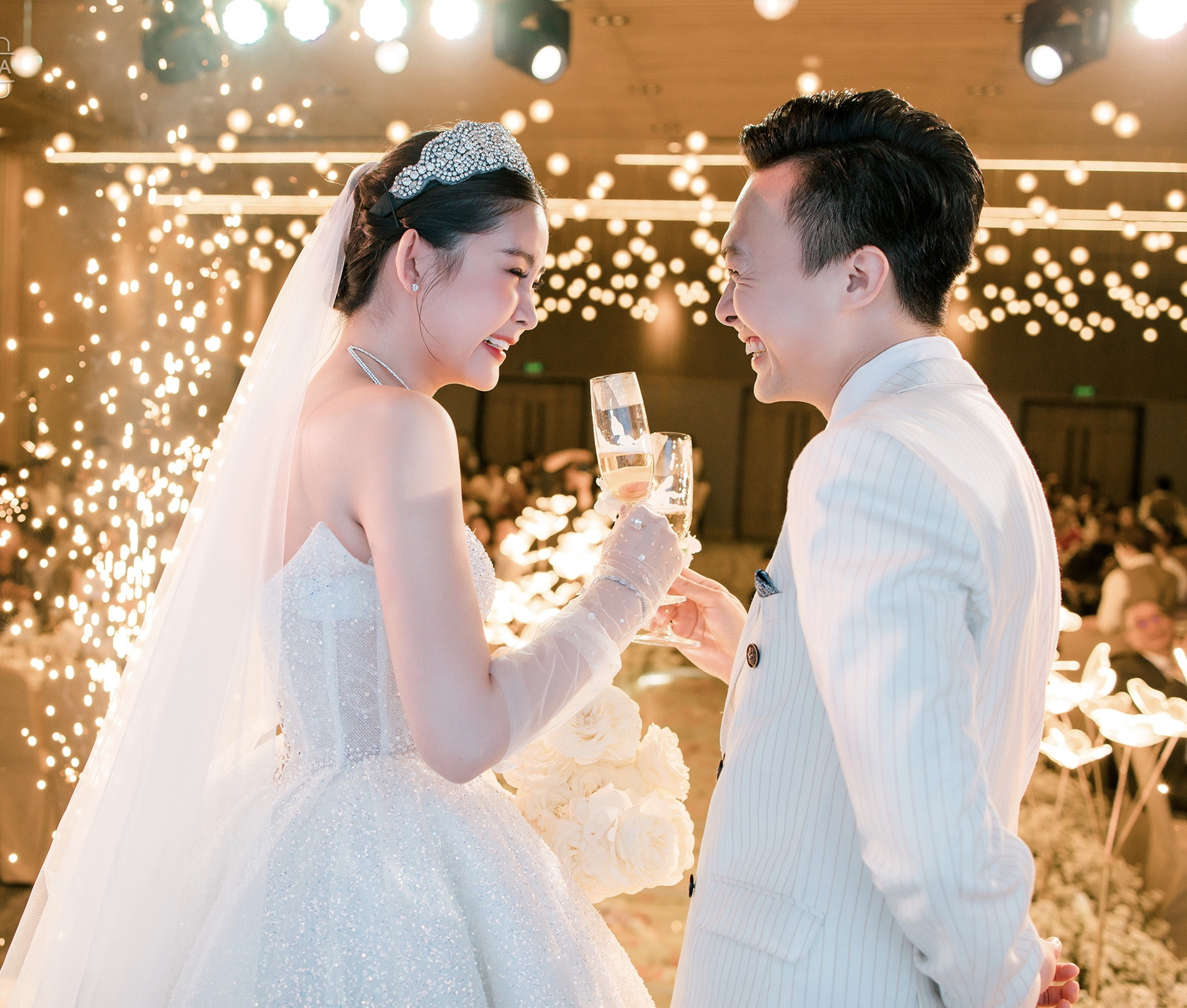 Lê Âu Ngân Anh và MC Phan Tô Ny tổ chức tiệc cưới ấm cúng, thân mật tại Quy Nhơn. Trong ngày trọng đại, Ngân Anh trang điểm nhẹ nhàng nhưng vẫn xinh đẹp, sang trọng. Chú rể Tô Ny diện vest bảnh bao, lịch lãm, khuôn mặt điển trai, sánh bước bên cô dâu.Khoảnh khắc cô dâu Ngân Anh xinh đẹp, rạng rỡ được cha dắt tay vào lễ đường. Trong hôn lễ, cả hai nhau trao ánh mắt tình tứ và nhiều cử chỉ ngọt ngào, thân mật.Cặp đôi Ngân Anh - Tô Ny đã đăng ký kết hôn gần nửa năm trước nhưng tháng 11/2022 mới chính thức tổ chức hôn lễ.Lê Âu Ngân Anh và Phan Tô Ny hạnh phúc trong lễ thành hôn, đón nhận những lời chúc mừng của gia đình hai bên và bạn bè thân thiết.Cặp đôi đã có màn khiêu vũ tình tứ trước sự chứng kiến của gia đình và quan khách. Cô dâu diện chiếc váy ngắn, nắm chặt tay ông xã, di chuyển từng bước nhịp nhàng, uyển chuyển. Màn khiêu vũ lãng mạn của Ngân Anh cùng ông xã trở thành khoảnh khắc đặc biệt của hôn lễ.Ngân Anh quen chồng sắp cưới trong một lớp học MC cách đây 2 năm. Khi đó, Tô Ny là thầy giáo còn Ngân Anh là học trò. Sau thời gian tìm hiểu, họ nảy sinh tình cảm và được gia đình hai bên ủng hộ.Trọng lễ cưới tại Quy Nhơn - quê nhà chú rể, Ngân Anh diện 3 váy cưới lộng lẫy, đính kết tinh tế để chào quan khách và bước vào lễ đường.Lê Âu Ngân Anh sinh năm 1995 tại Tiền Giang, đăng quang Hoa hậu Đại dương năm 2017. Sau đó, người đẹp giành ngôi á hậu 4 cuộc thi Hoa hậu Liên lục địa. Hiện nay, cô làm việc cho một công ty đầu tư và tư vấn tài chính trước khi trở thành giảng viên một trường đại học tại Việt Nam. Ngân Anh lần đầu công khai hình ảnh chồng sắp cưới là MC nổi tiếng vào tháng 8. Cô tiết lộ về chung một nhà với bạn trai sau hai năm hẹn hò. Ngân Anh và chồng sẽ tổ chức đám cưới tại TP.HCM vào 18/11/2022.