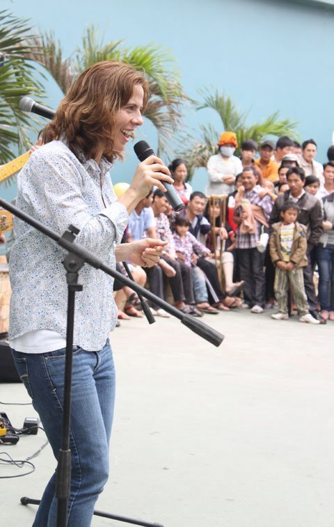 “Sân khấu” cũng “lạ”, chỉ có bộ loa công suất vừa phải, truyền âm thanh từ giọng hát, nhạc cụ được chơi “live” đến khán giả, tạo nên sự giao tiếp mặt đối mặt. Chị Huệ bảo, phần biểu diễn của ban nhạc đồng quê Mary McBride đến từ Mỹ, “nghe không hiểu chi mô, nhưng mà thích lắm”. Ca sĩ được chị Huệ nhận xét là “có giọng hát hay, xịnh đẹp, các bài hát có giai điệu tươi vui, nhẹ nhàng” chính là đại sứ văn hóa của Bộ Ngoại giao Hoa Kỳ, đã lưu diễn qua nhiều nơi trên thế giới. “Sân khấu bệnh viện’, hẳn không có nhiều khán giả từng nghe Mary McBride hát ca khúc nổi tiếng của cô là “No one’s gonna love you like me” trong bộ phim từng đoạt giải Oscar ‘Brokeback mountain” của đạo diễn Lý An hay các album nhạc của cô ca sĩ này; nhưng chứng kiến lối trình diễn hết sức gần gũi, giản dị của ca sĩ, ban nhạc và nhìn vào ánh mắt, tiếng vỗ tay, niềm vui thể hiện trên gương mặt của bệnh nhân, người xem không còn thấy khoảng cách lớn của sự “bất đồng ngôn ngữ”. Khán giả - bệnh nhân nghe Mary McBride hát nhạc Mỹ cũng giống như khi nữ ca sĩ cầm giấy hát bài dân ca Nam bộ “Lý chiều chiều” với tiếng phát âm lơ lớ: “Chiều chiều, ra đứng tây lầu tây…”.