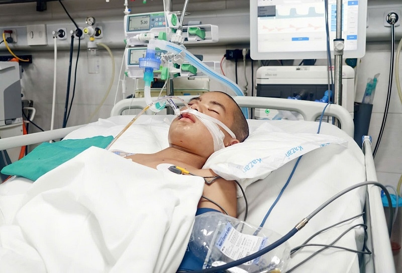 Bác sĩ Hoàng Văn Vụ - người trực tiếp điều trị - cho biết, bệnh nhân Lê Quang Huy nhập viện trong tình trạng bỏng hô hấp nặng, bỏng lan từ đầu, mặt và ngực xuống đùi với 27% diện tích cơ thể, trong đó 15% bỏng sâu. Bệnh nhân đã trải qua ca phẫu thuật ghép da và đang điều trị biến chứng nhiễm khuẩn nặng, có nguy cơ phải lọc máy, chi phí điều trị rất lớn.