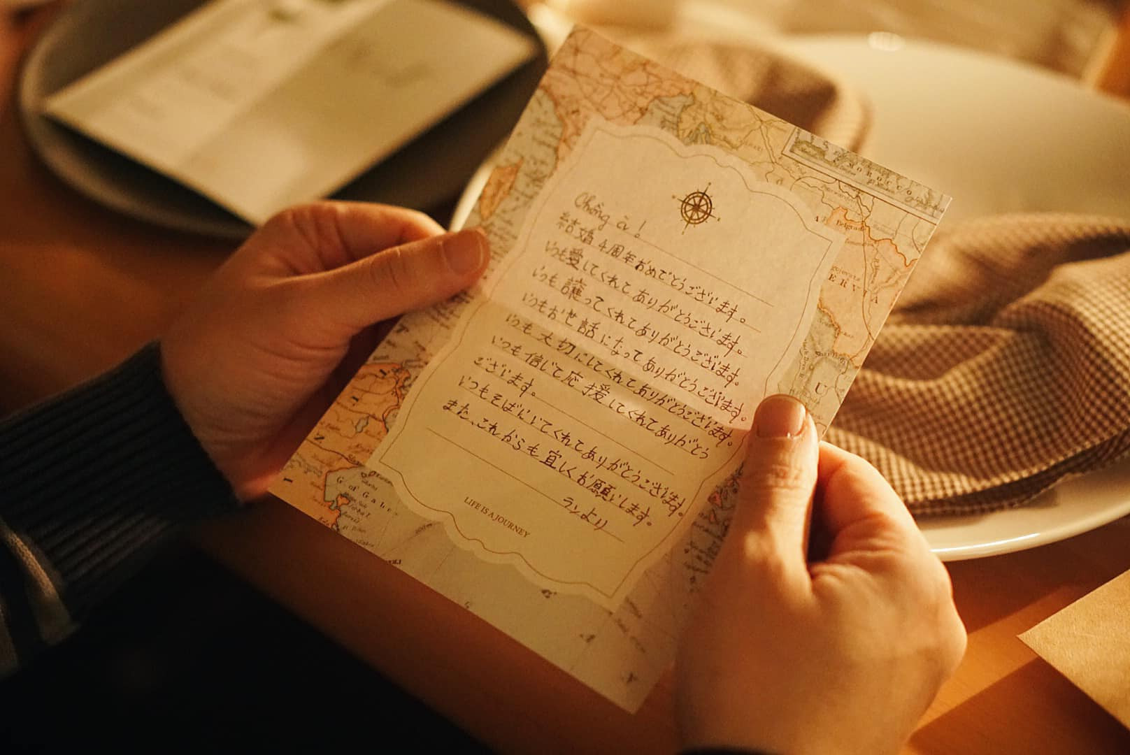 Cả hai uống chút rượu và dùng tiệc với các món ngon do tự tay chị Lan chế biến. Dưới ánh nến huyền ảo, chị Lan đưa cho anh Akitaka một bức thư tay viết bằng tiếng Nhật.