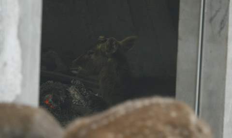 | Các chú nai chen nhau nằm sưởi lửa. Có