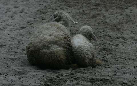 | Ở ngoài trời, nhưng cừu con phải tựa vào cừu mẹ để lấy hơi ấm giữa trời đông lạnh giá |