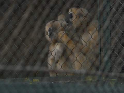 | 2 con khỉ ôm nhau để khỏi lạnh |