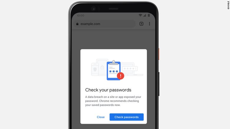 Tính năng mới nhất trên Chrome sẽ cảnh báo người dùng nếu tên người dùng và mật khẩu của họ bị rò rỉ trong lỗ hổng bảo mật nào đó. Cửa sổ pop-up hiện ra hỏi có muốn thay mật khẩu đã lưu hay không.