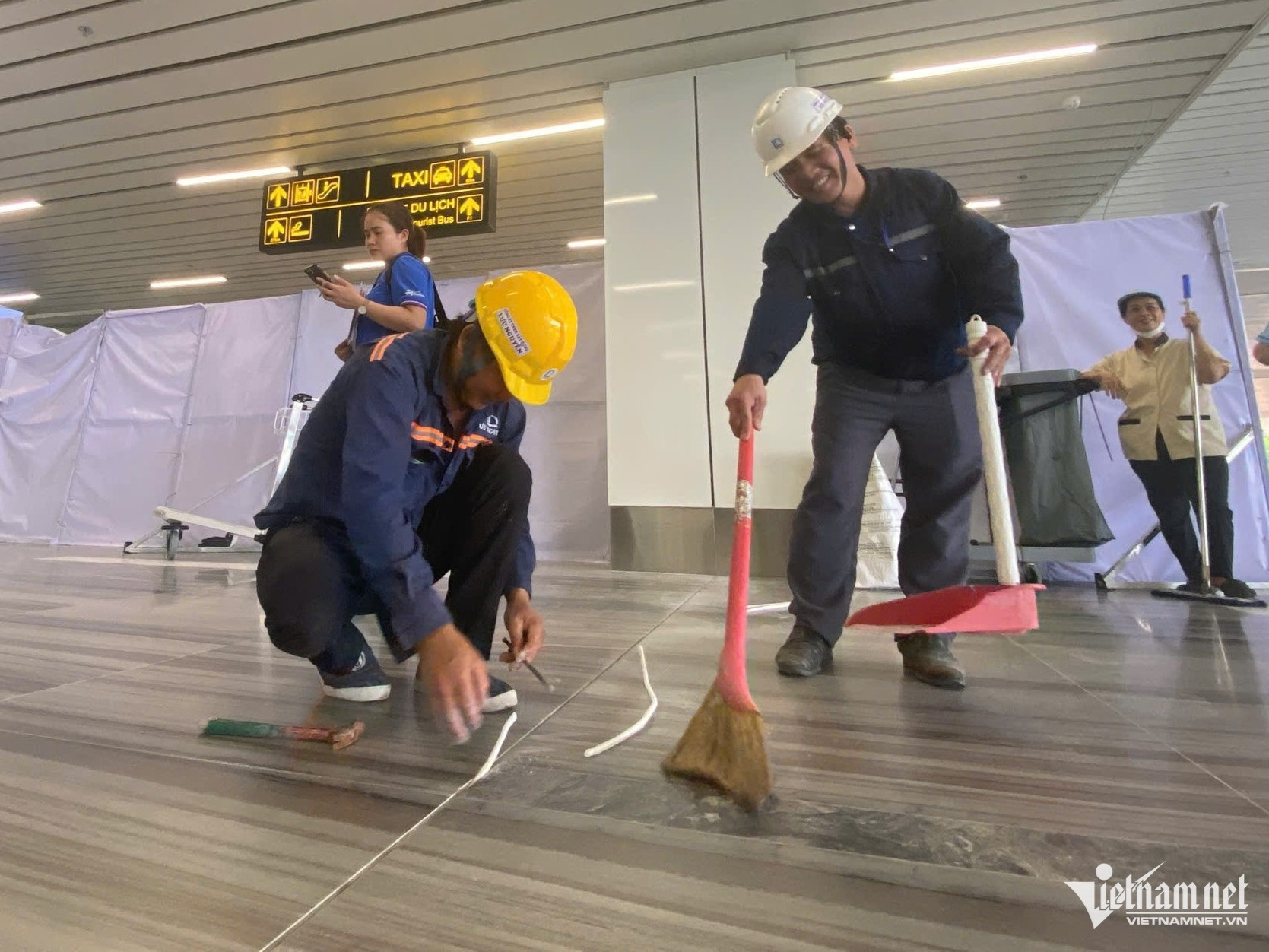 Đại diện nhà thầu cho biết do thời gian gấp rút, sau khi bàn giao nhà ga đưa vào khai thác, nhà thầu vẫn phải tiếp tục hoàn thiện một số công việc còn lại, chủ yếu là phần nền đá. Đến thời điểm hiện tại, phía nhà thầu đã hoàn thiện được khoảng 50% diện tích nền đá và đang tiếp tục hoàn thiện.