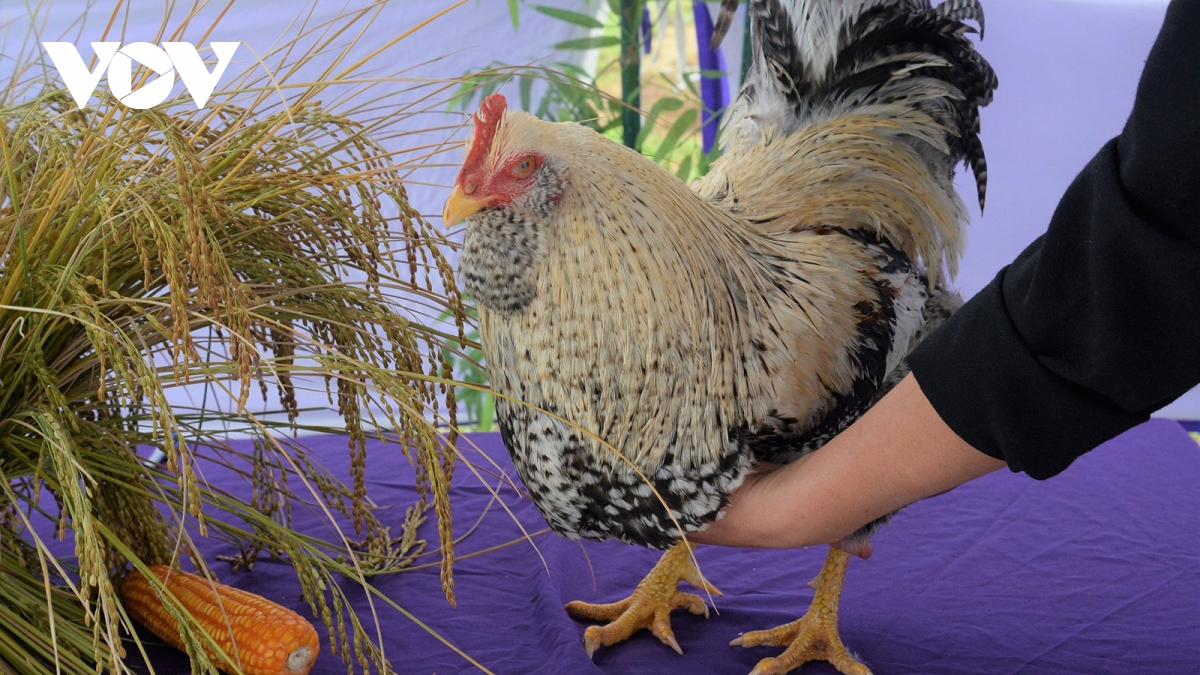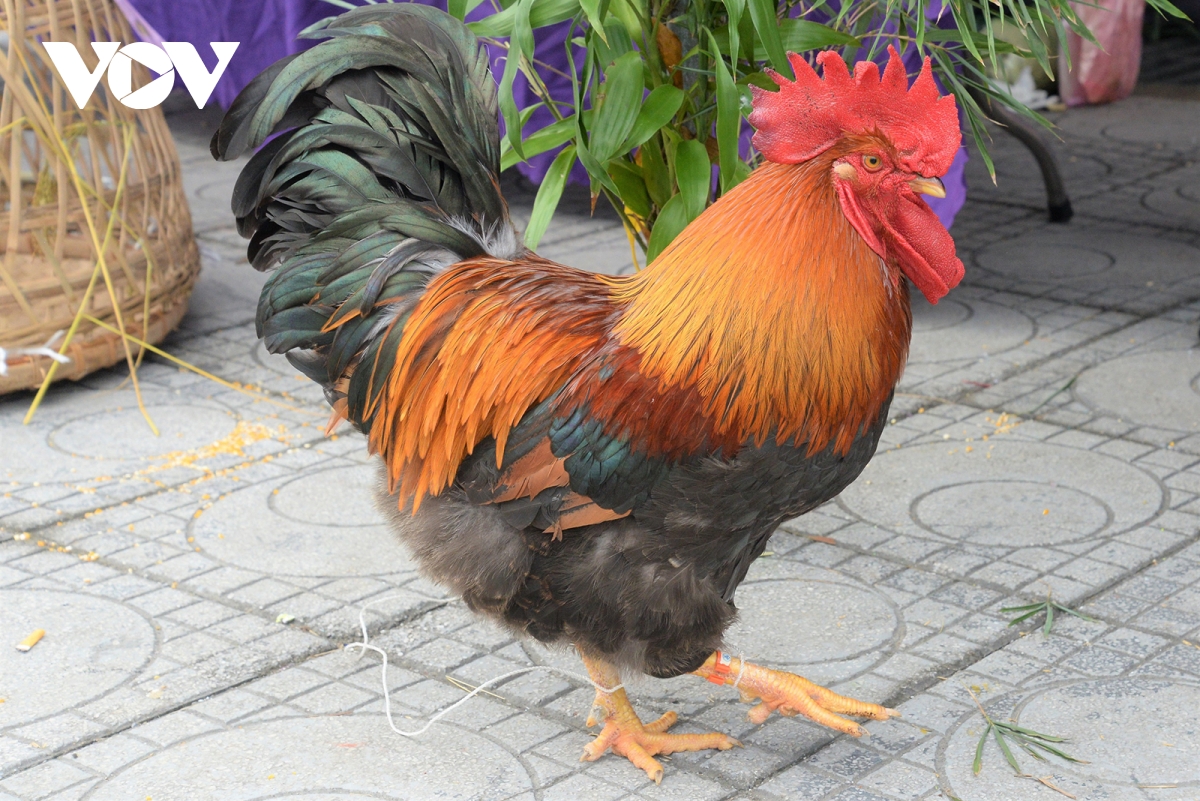 Gà trống 3 năm tuổi của Hội Nông dân xã Tiên Lãng nặng 4,5kg, trọng lượng lớn nhất tại hội thi.