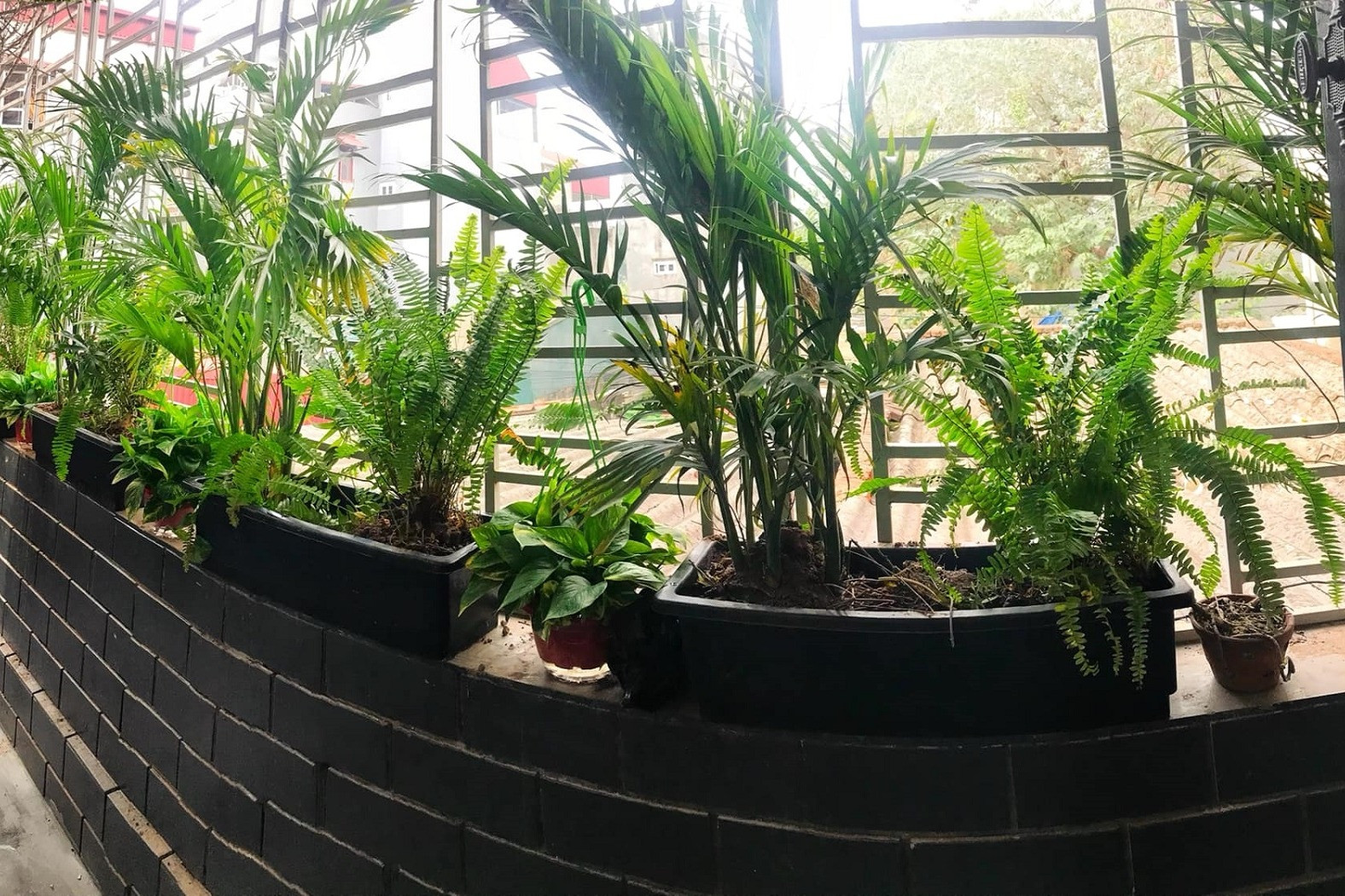 Các loại cây trong vườn không hề đắt đỏ, giá 50.000, 100.000 đồng/chậu đến vài trăm ngàn. Không một cây nào trong vườn có giá tiền triệu", anh Hùng cho hay. Anh tính toán, chi phí đầu tư hệ thống cây xanh trong 4 năm qua khoảng 30-40 triệu đồng.