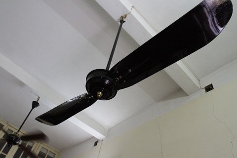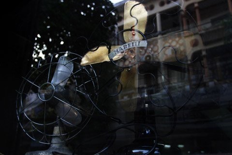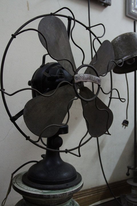 Ngôi nhà la liệt những chiếc quạt cổ khiến người xem thích thú. Marelli là thương hiệu quạt nổi tiếng của Ý vốn được người Hà Nội hết sức ưa chuộng ở thế kỷ trước bởi kiểu dáng đẹp, từ chiếc lồng quạt được uốn vô cùng tinh tế đến chiếc cánh duyên dáng. Do vậy mỗi chiếc quạt thực sự là một tác phẩm nghệ thuật.
